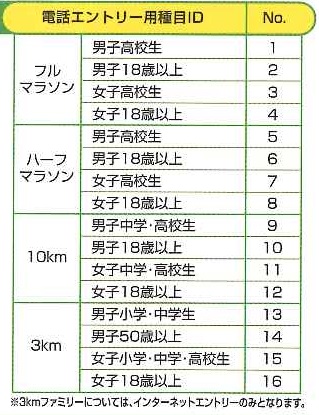 電話エントリー用種目ID